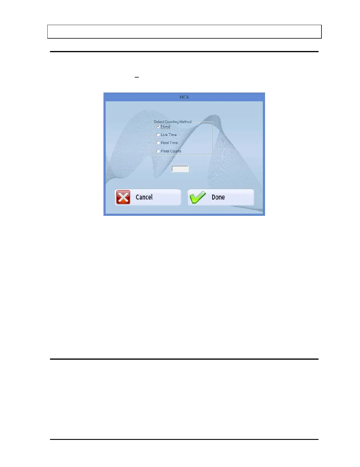 • Live Time – Count until the preset MCA live time is reached (1-32,400 seconds).