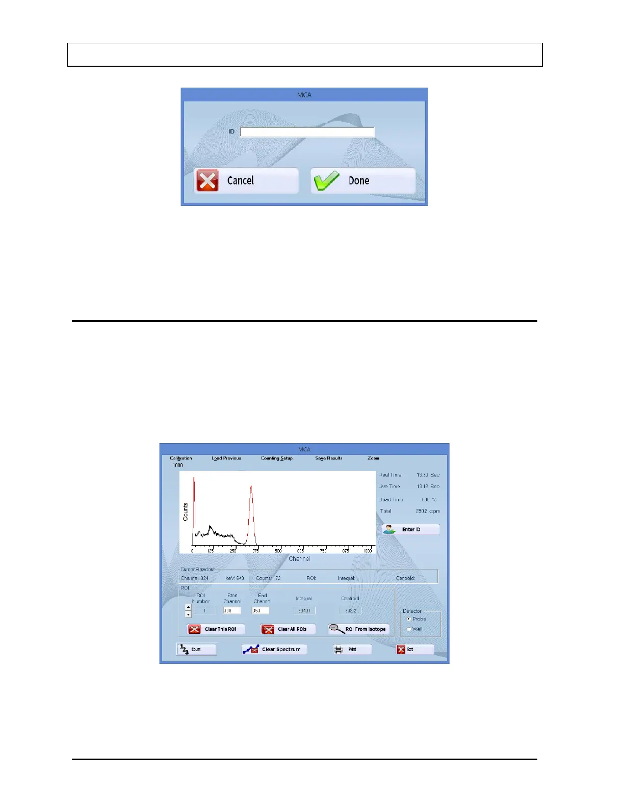 To view active ROIs, look in the ROI frame on the MCA screen. One ROI is displayed at a