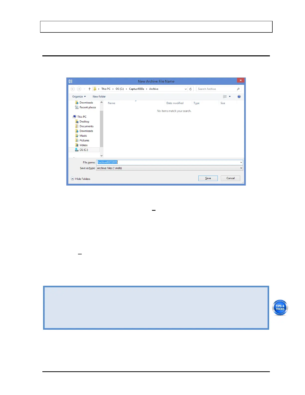 The default folder for saving archive files is C:\Captus4000e\Archive\. The file name and