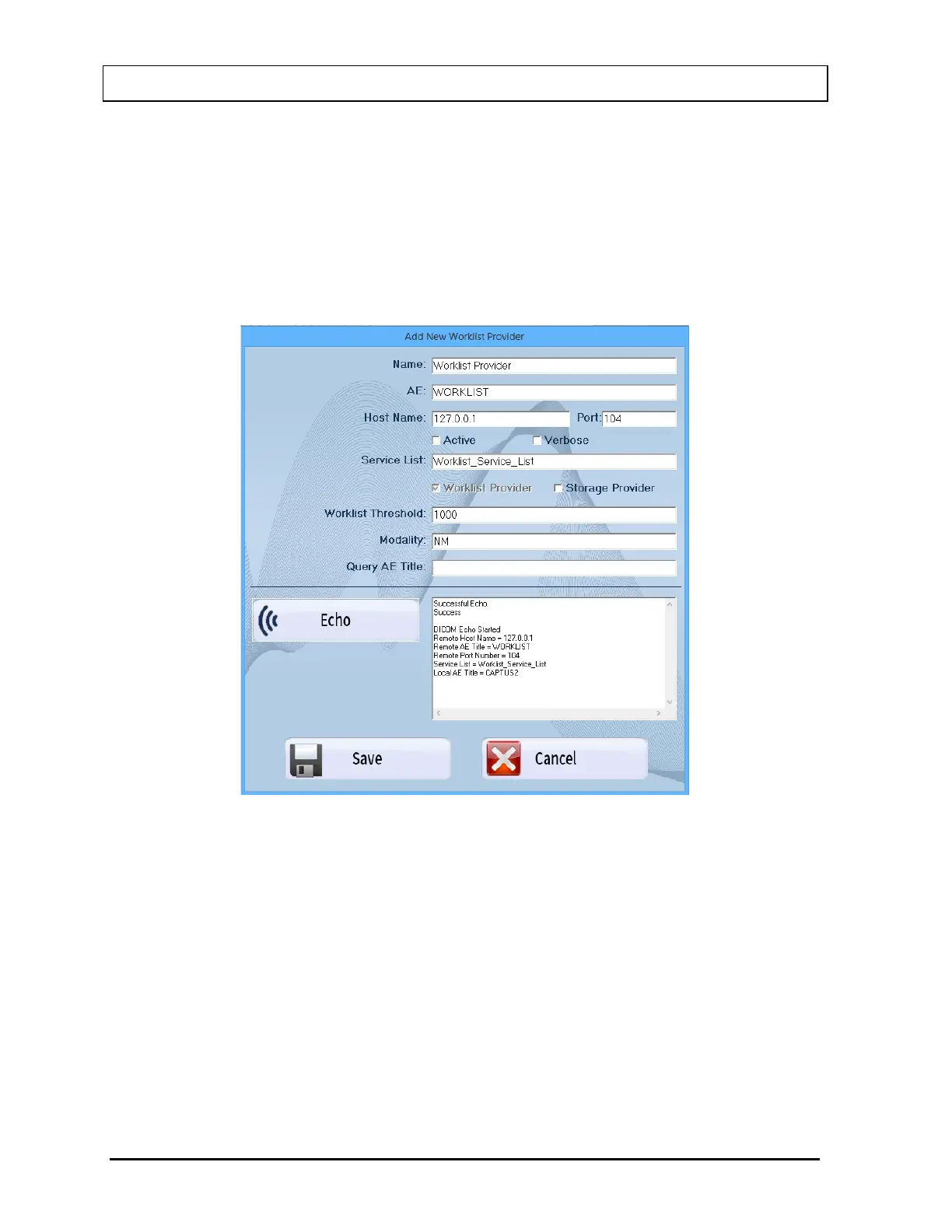 This Worklist Provider window is used to specify the DICOM Modality Worklist