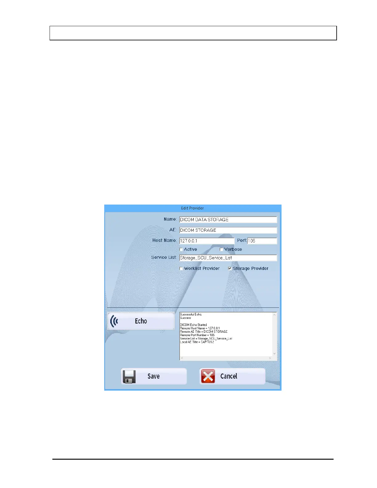 After entering the data, select the Echo button to confirm that the DICOM SERVER is