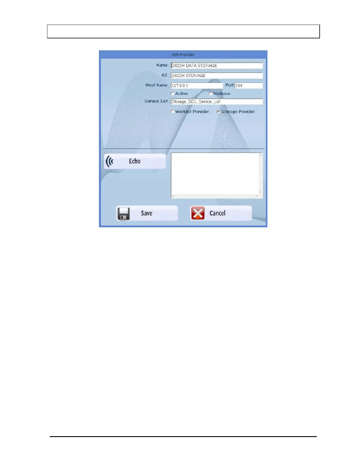After entering the data, select the Echo button to confirm that the DICOM SERVER is