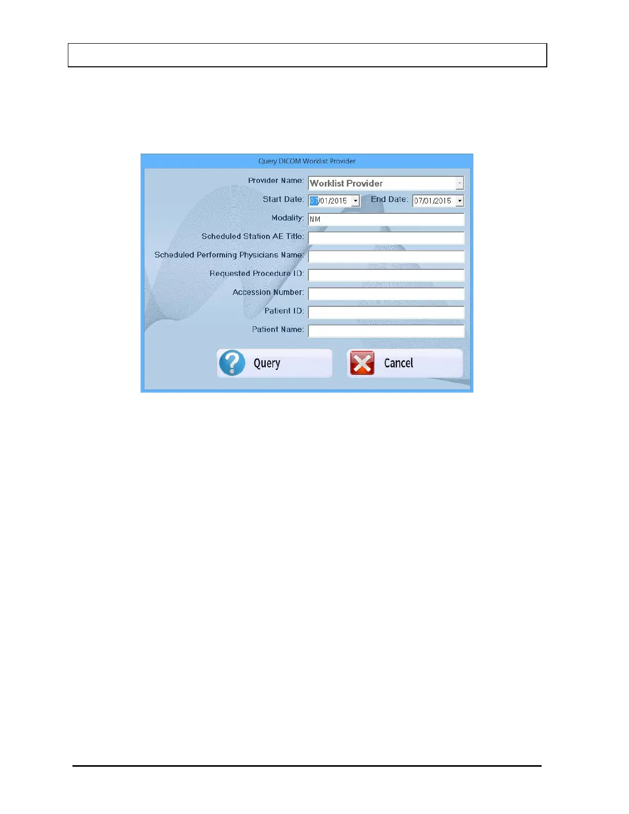 The Start/End Date queries the Worklist for specific date or a range of dates. The