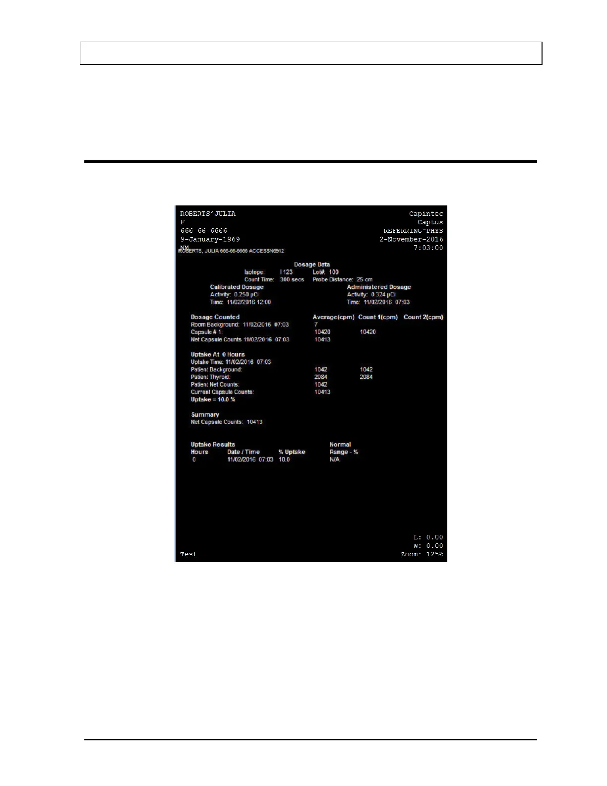 Select the Exit button to exit the Thyroid Uptake screen. The CAPTUS