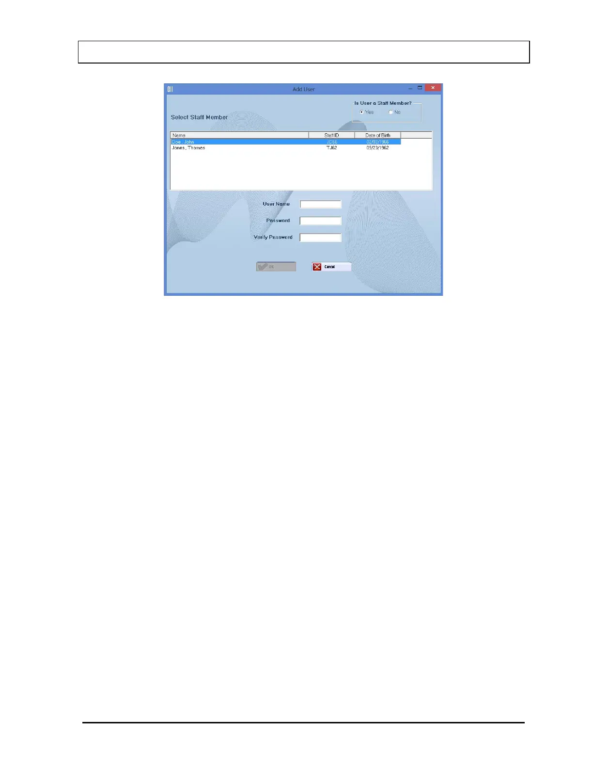 the No radio button. Figure 4-7 Add User (Not a Staff Member) Window will appear.