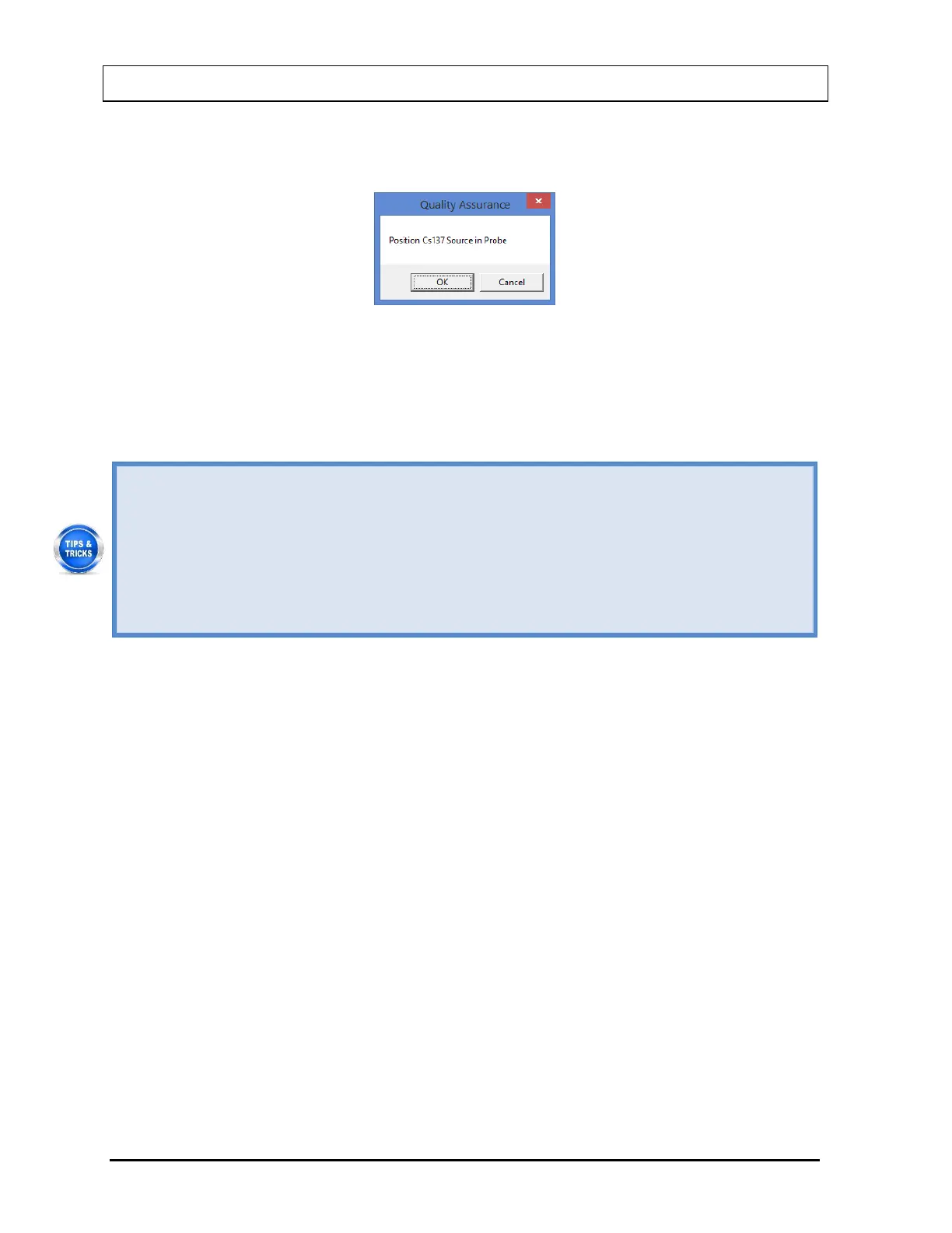 4. Place the Cs137 rod source in the selected detector. To ensure reproducible source