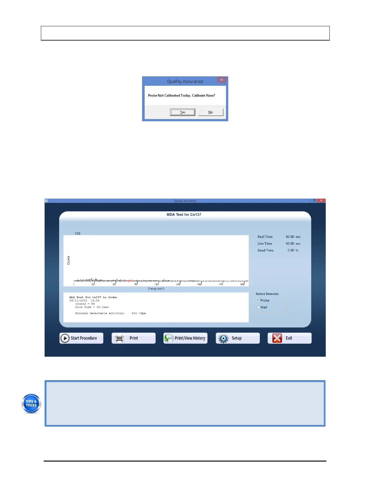 9. Remove any radioactive source from the vicinity and select the OK button to proceed