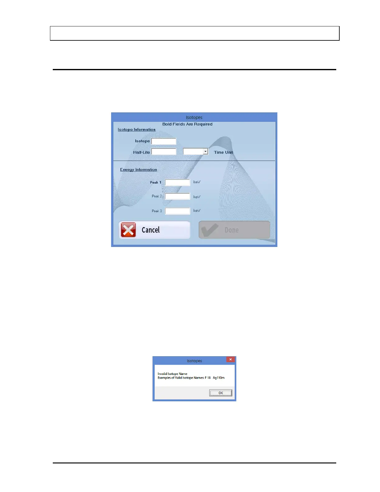 Note: An isotope name can be entered only in a specific format; which is the symbol of