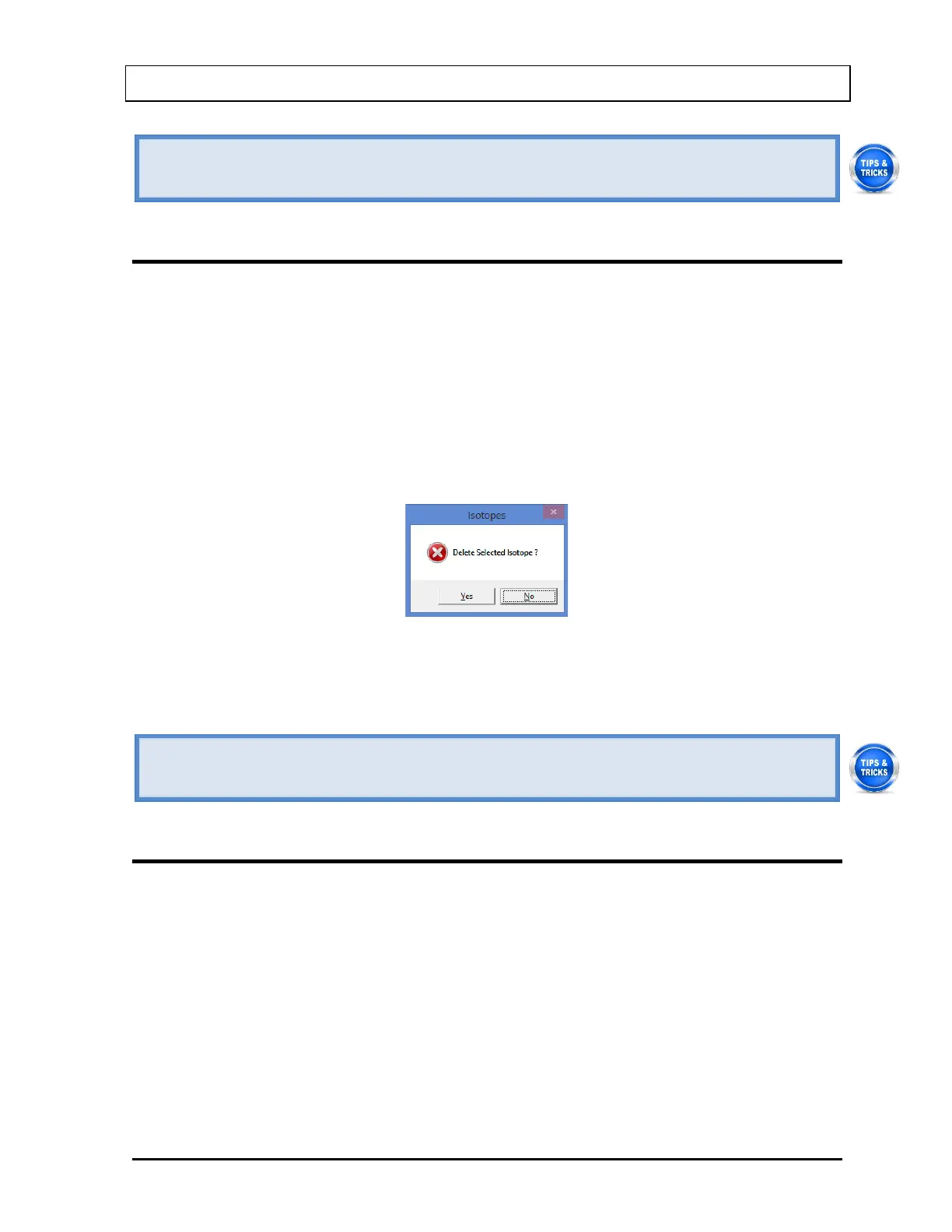 Note: Only user added isotopes can be deleted. Isotopes in the system’s pre-existing