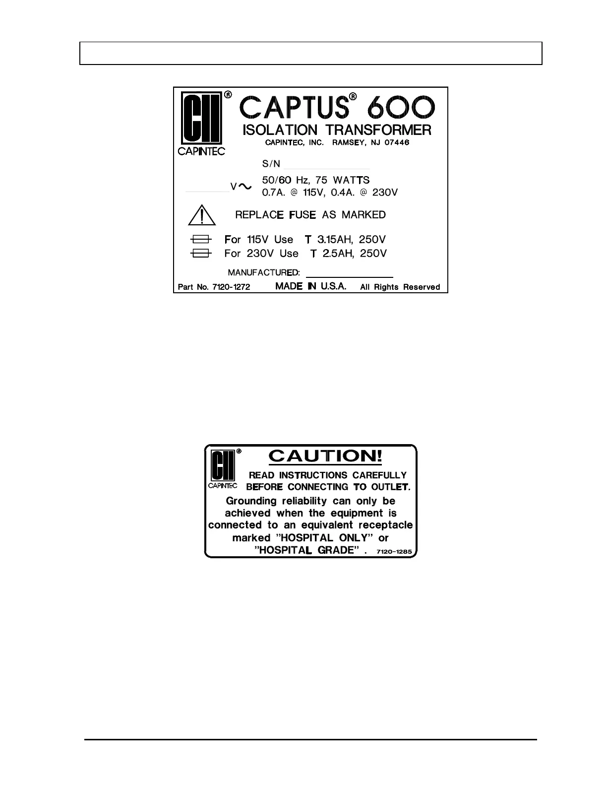 HOSPITAL GRADE, to insure reliable grounding is provided to the CAPTUS