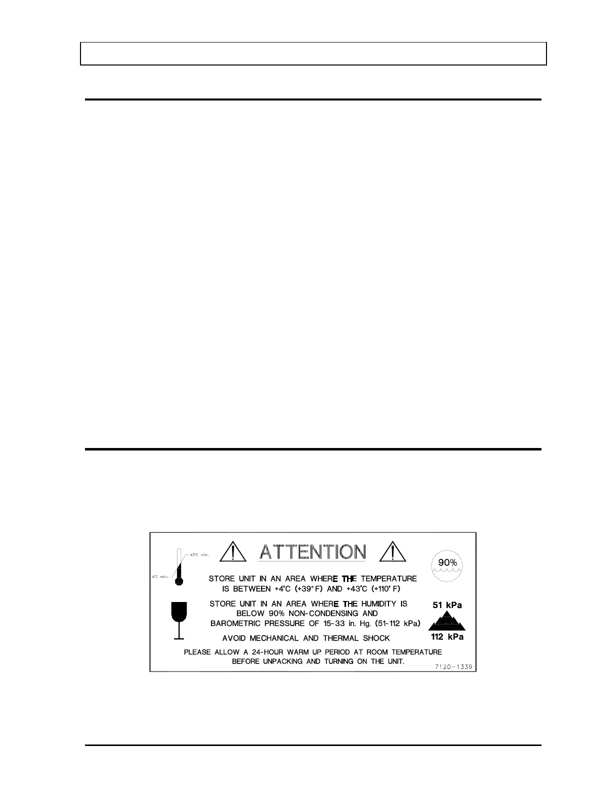 Label stipulating the maximum environmental conditions for safe storage and shipment.