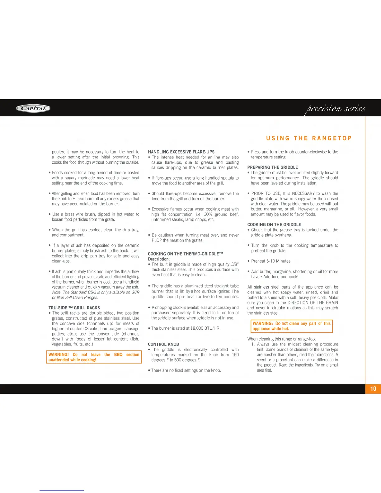 Capital Range - USING THE RANGE-TOP; HANDLING EXCESSIVE FLARE-UPS; COOKING ON THE THERMO-GRIDDLE; PREPARING THE GRIDDLE