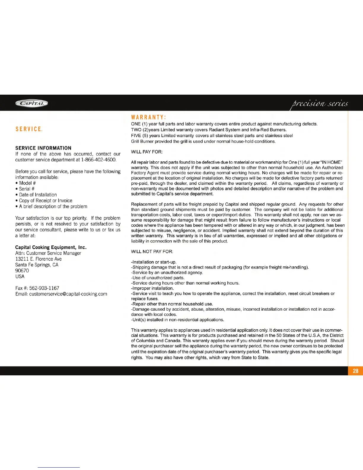 Capital Range - SERVICE; SERVICE INFORMATION; WARRANTY