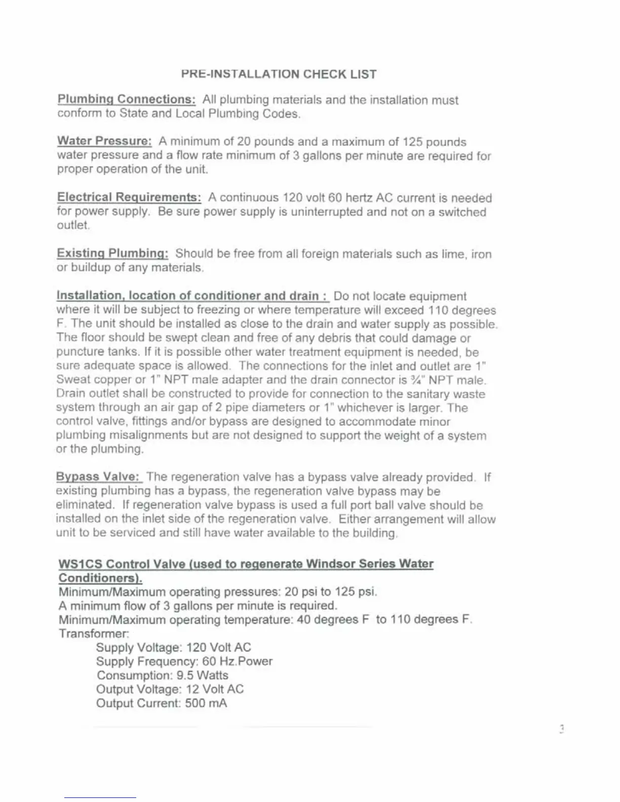 Capital WS 16 - Installation and Setup; Plumbing and Electrical Requirements; Installation Location and Pressure; Bypass Valve and Control Valve Specs