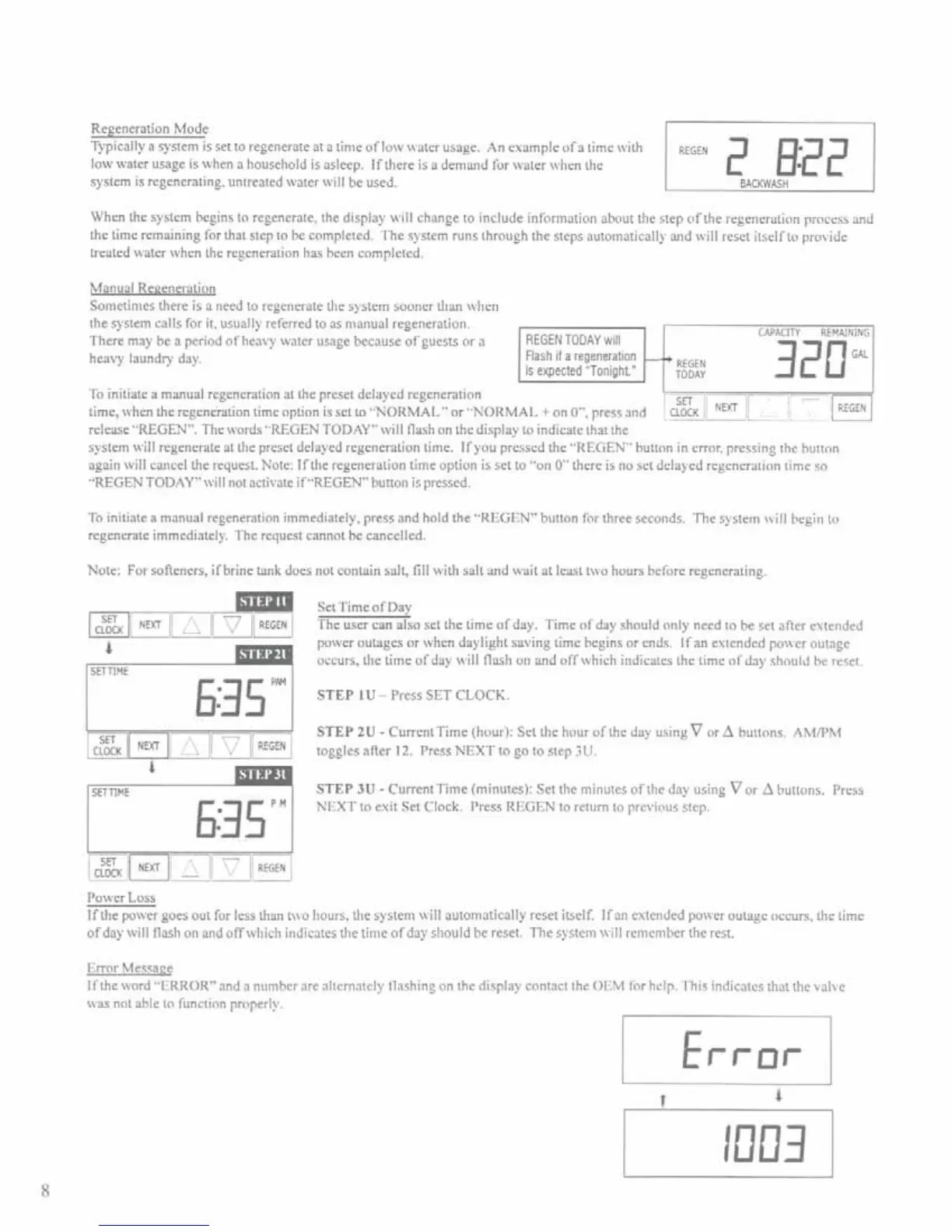 Capital WS 16 - Regeneration Mode; Manual Regeneration; Power Loss; Error Message
