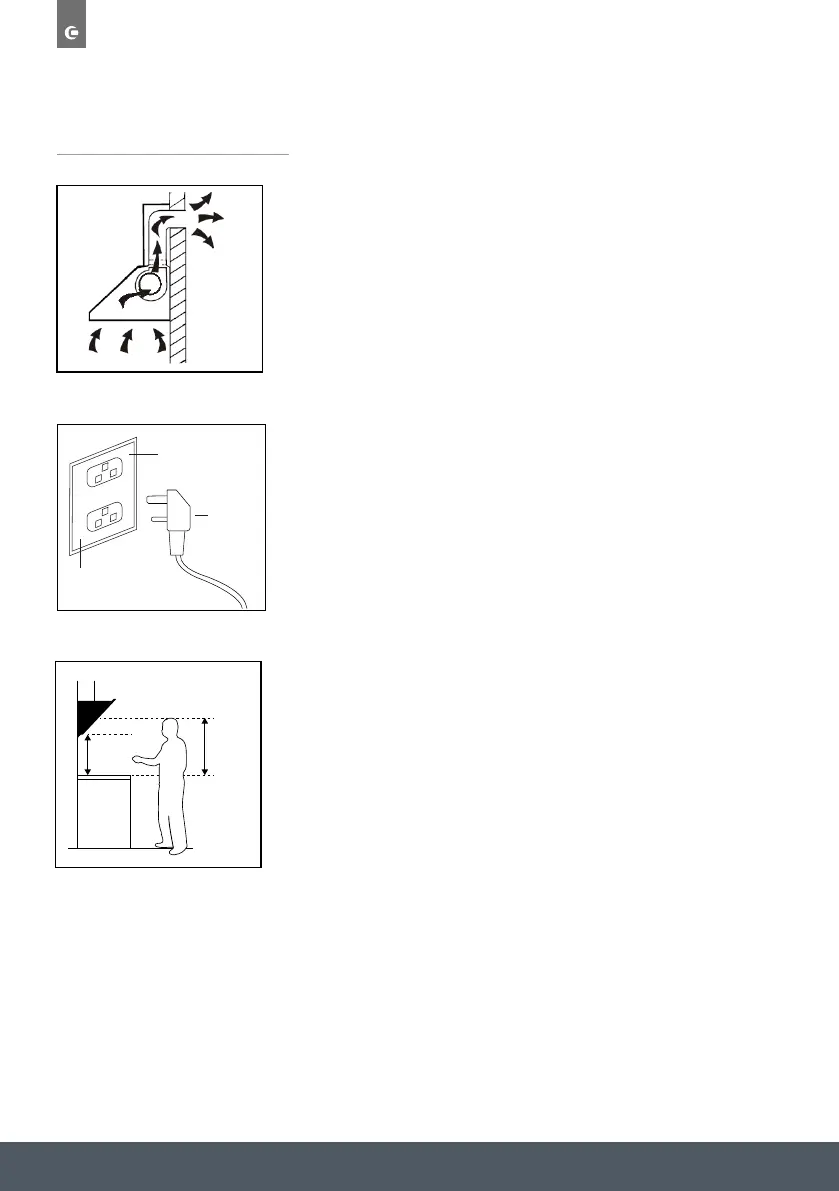 The cooker hood should be placed at a minimum distance