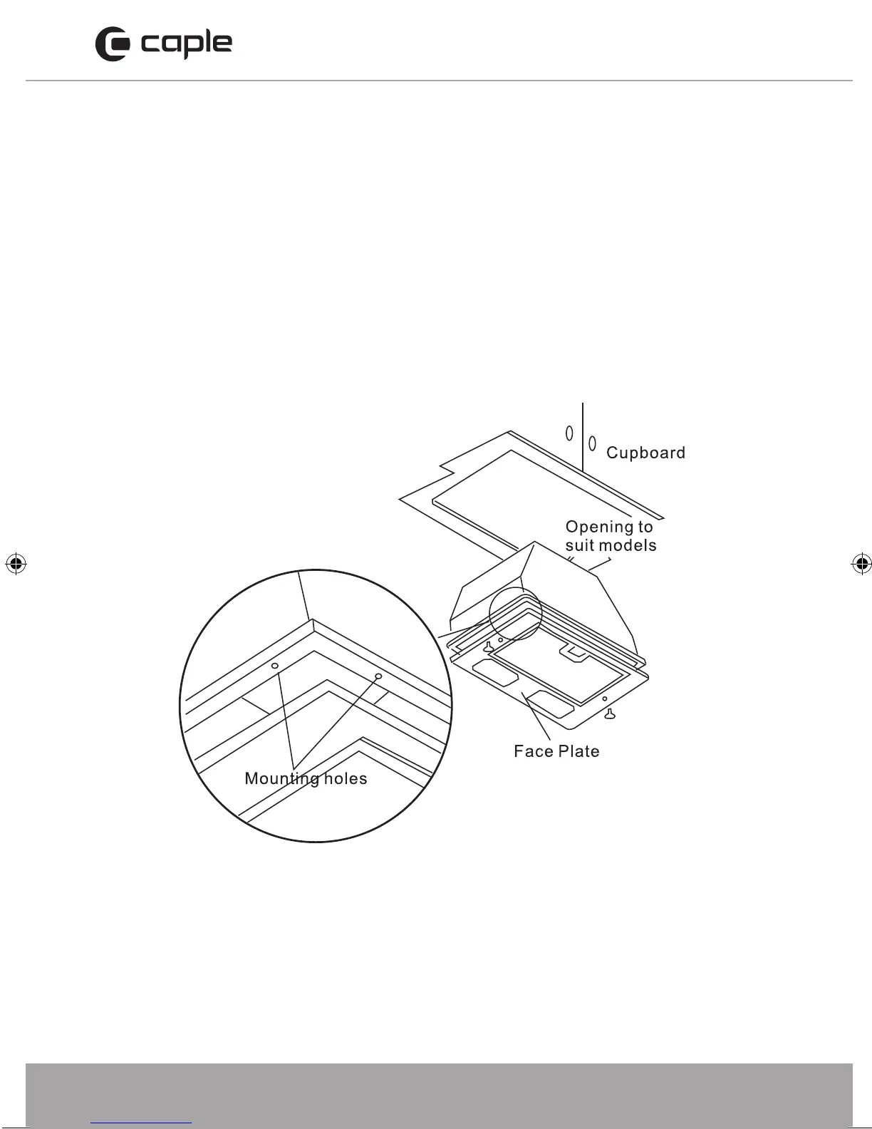 Lift the rangehood and fit through the opening cupboards. Secure unit using long