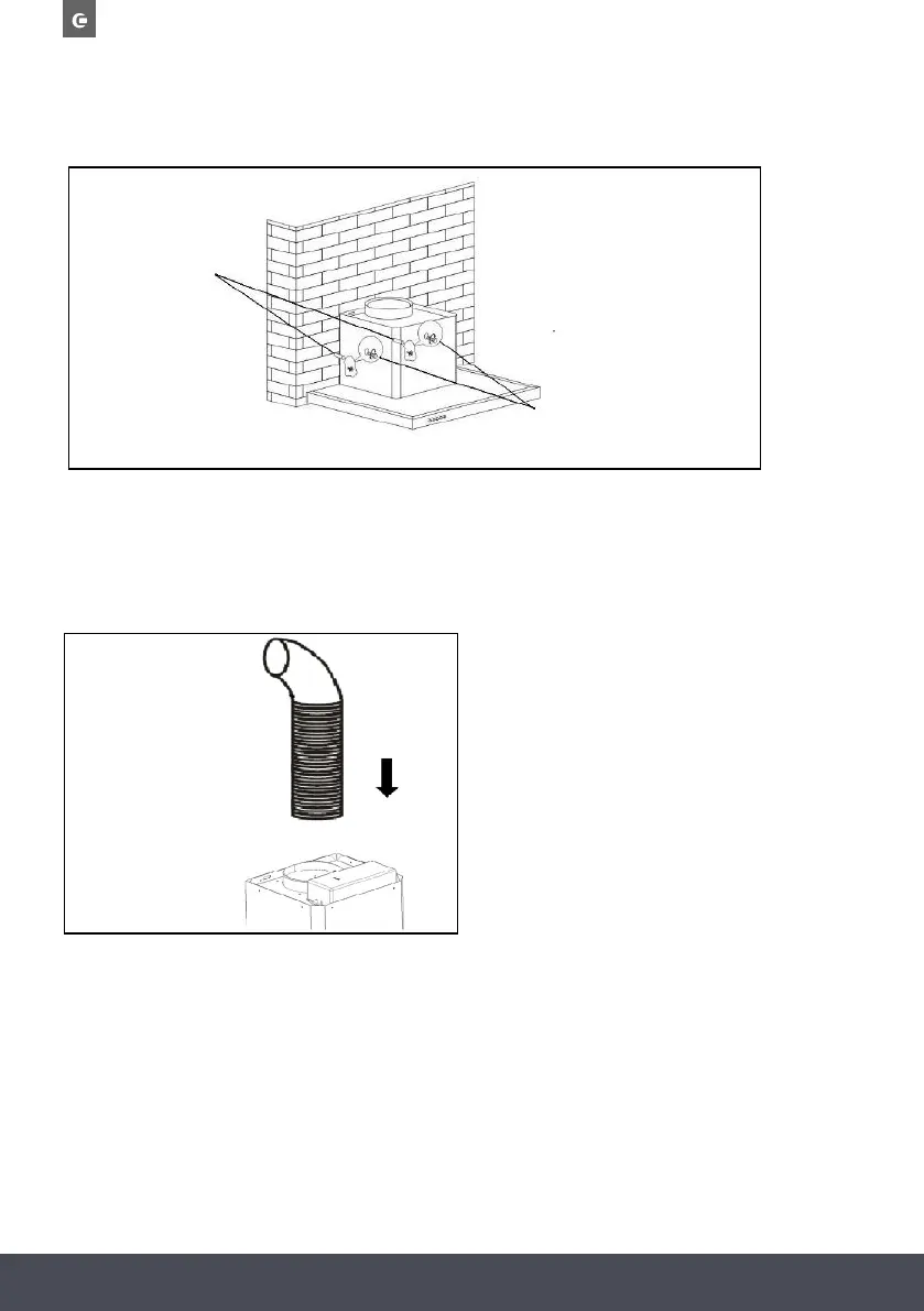 Fix the one-way-valve to the air outlet of the cooker hood. Then, attach the exhaust pipe onto the