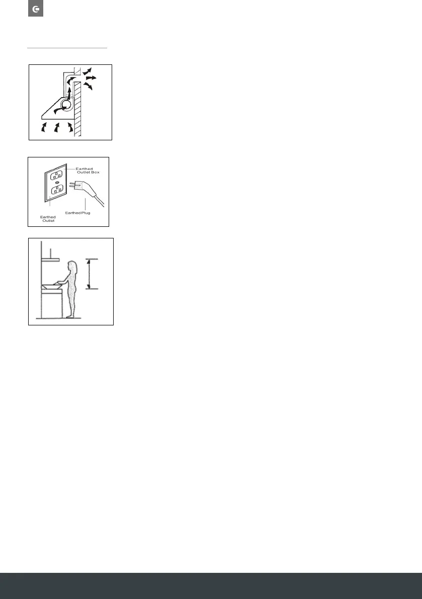 The cooker hood should be placed at a minimum distance of 65-76cm