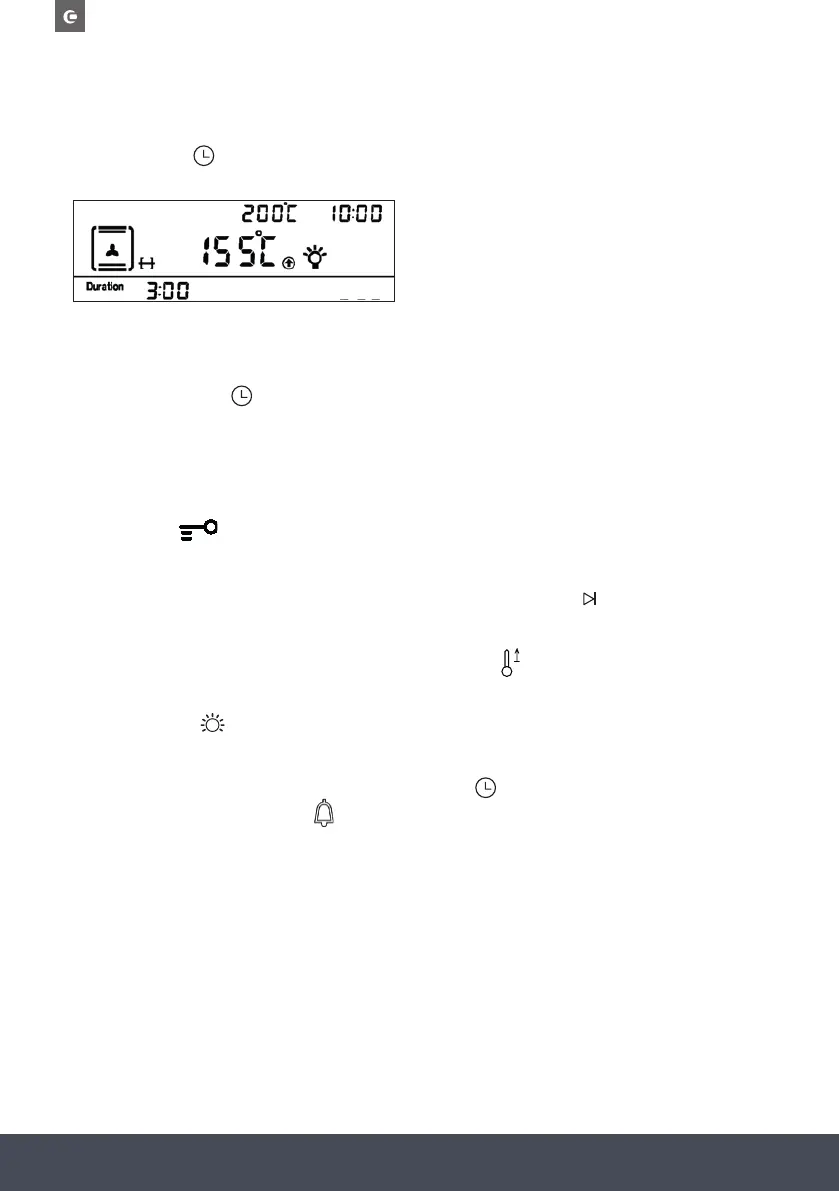 pressing / and then press to set the duration. Once the time is up, an alarm will sound and the oven