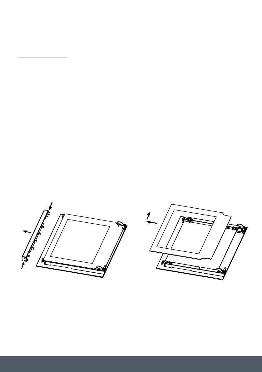 Remove the door from the oven (see ‘Removing the door’) and place it on a protective surface