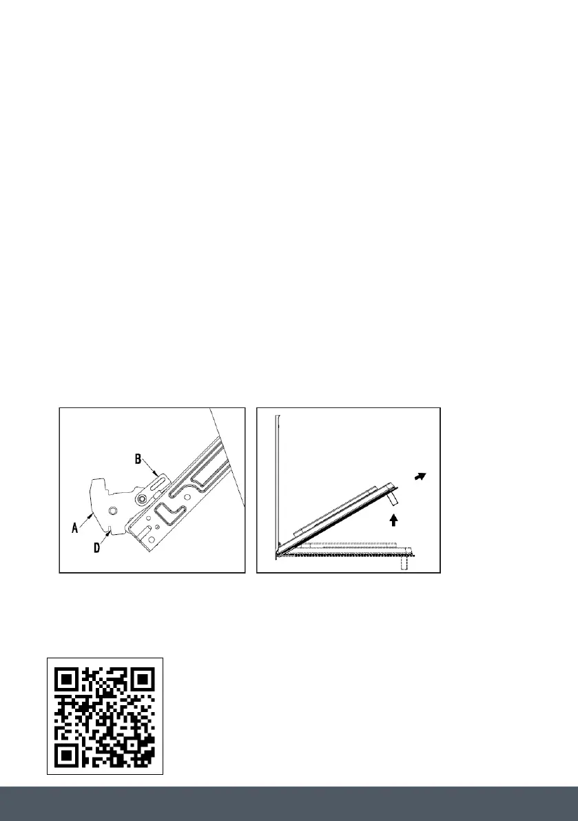 › Keep the oven door open fully, unhook the 2 levers “B” downwards and then shut the