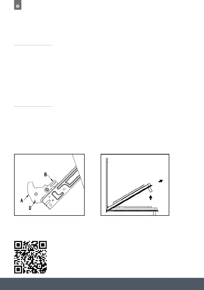 ● Keep the oven door open fully, unhook the 2 levers “B” downwards and then