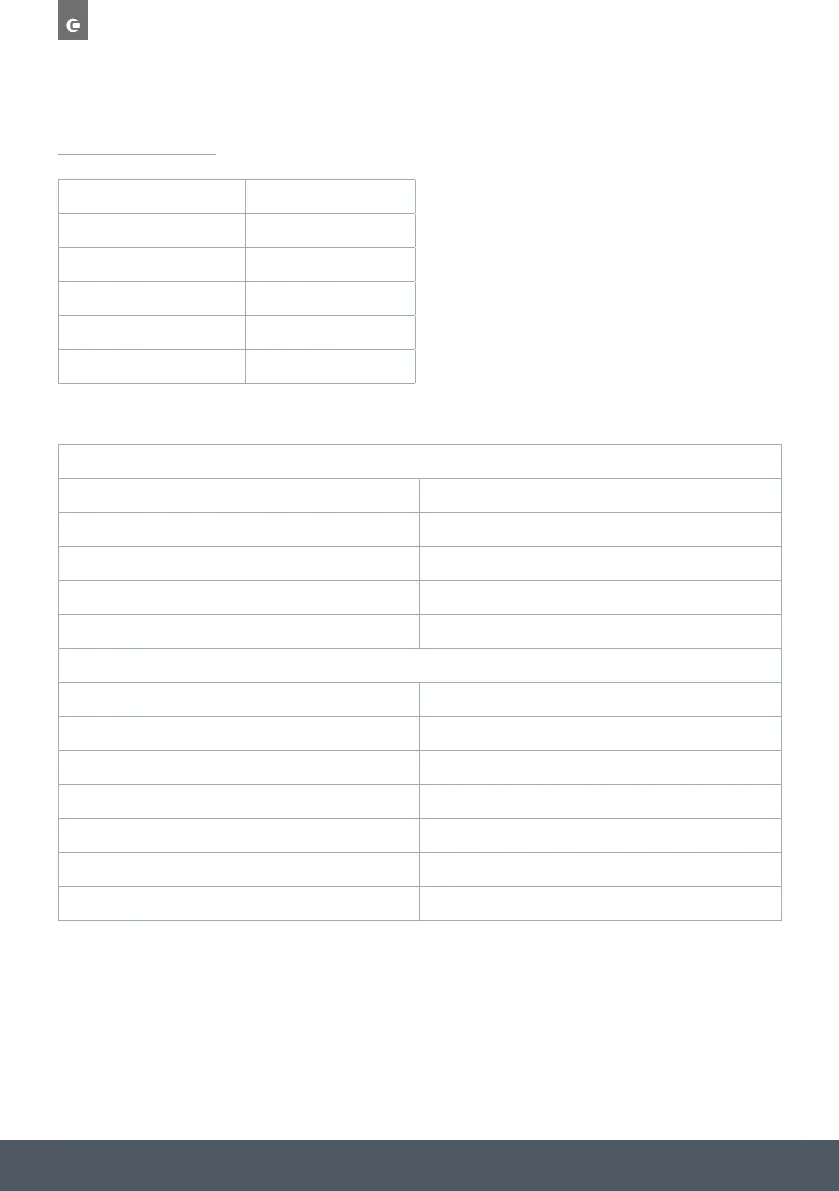 MAIN OVEN NOMINAL ELECTRICAL INPUT IN W (TOLL. +5 / -10%)