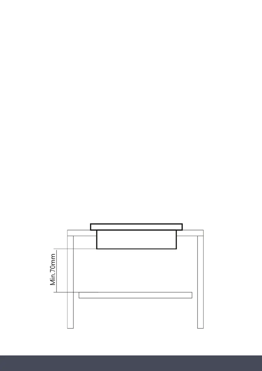 › You must have a gap of at least 70mm bewteen the underside of the hob and any surface that