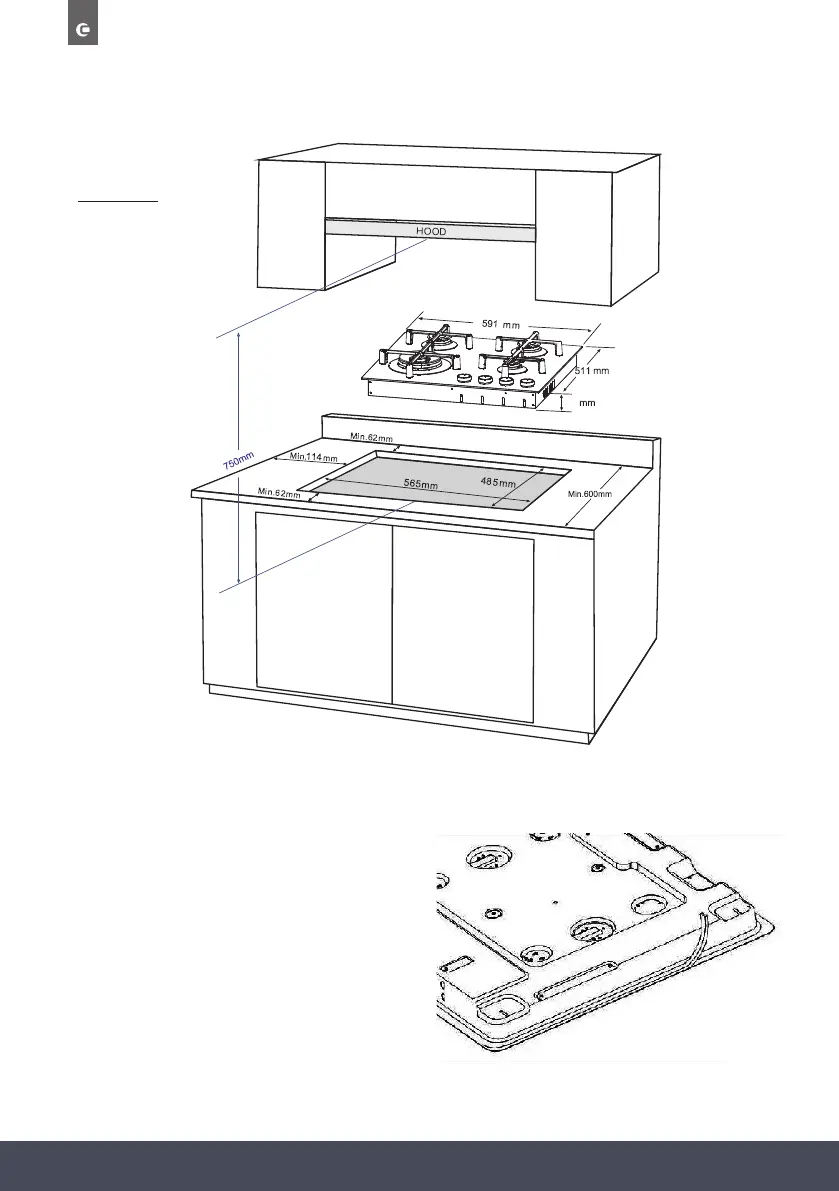 Apply the seal to the underside edge of the hob.