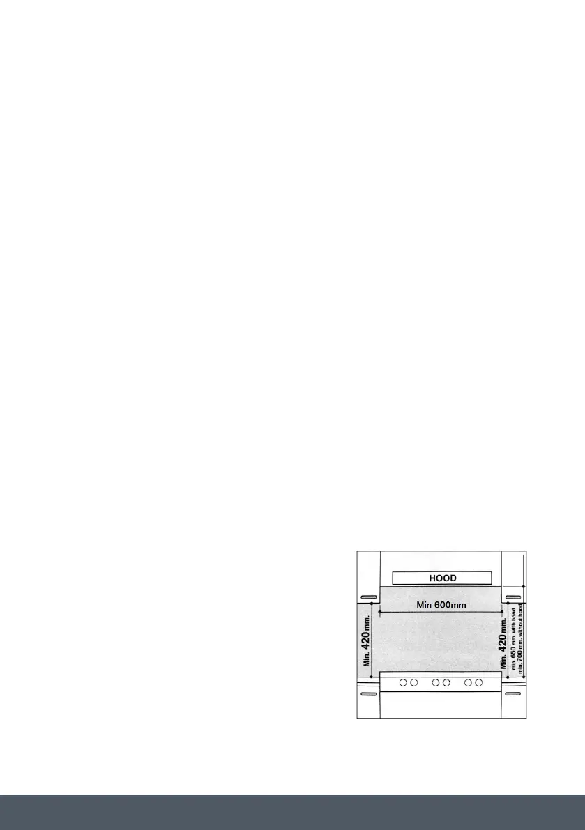 This panel must be placed at least 20 mm from the bottom of the hob itself.