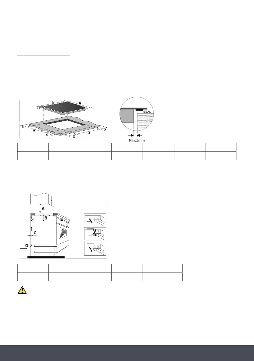 surface is at least 30mm. Please select heat-resistant work surface material to avoid deformation