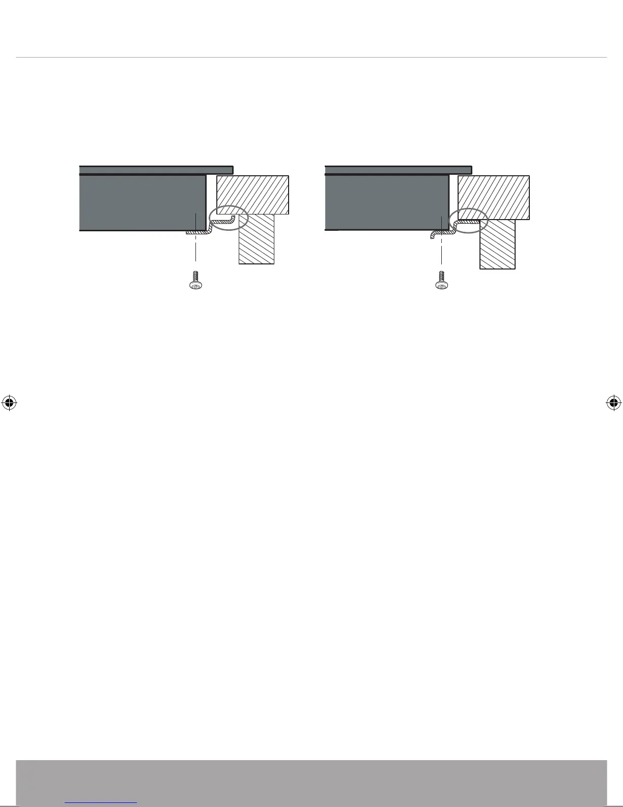 Fix the hob to the work surface by screwing four brackets to the bottom of hob (see picture) after installation.