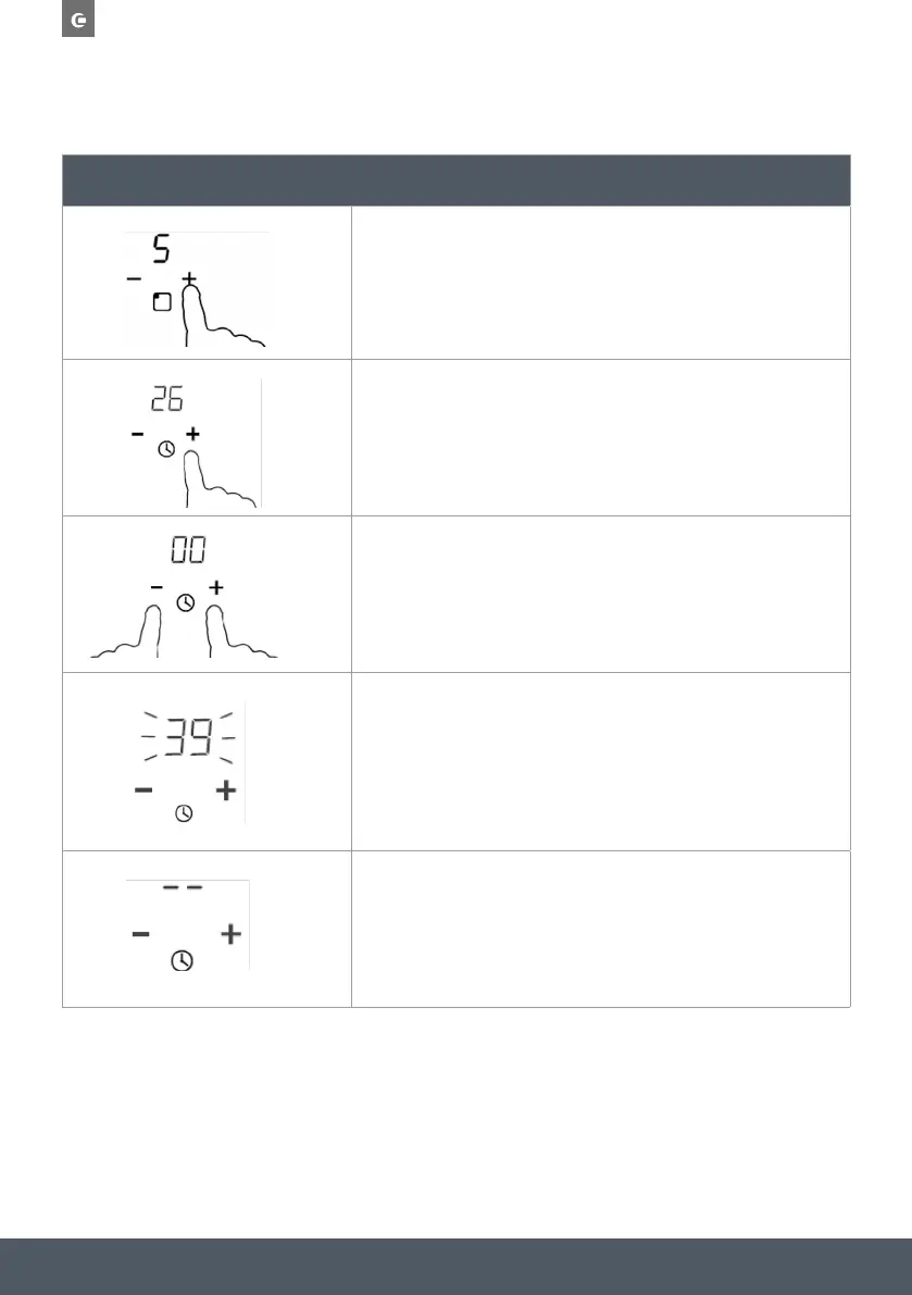 Touch the”-“ or ”+” of the corresponding cooking zone you want to set