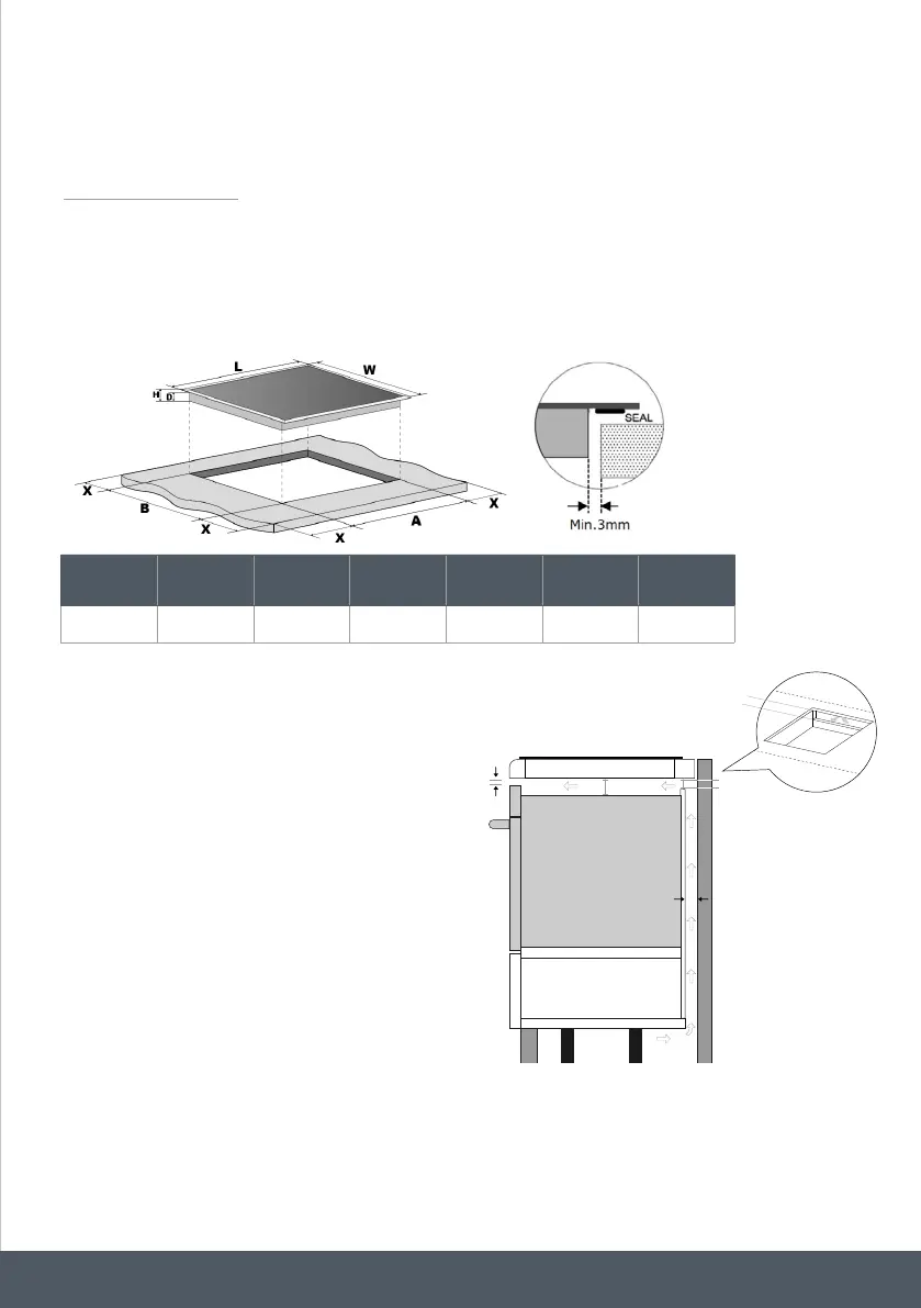 thickness of the work surface is at least 30mm. Please select heat-resistant work surface material