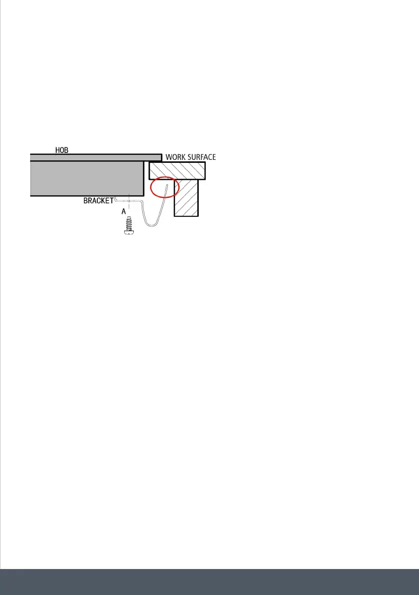 Fix the hob on the work surface by screwing the 2 brackets on the bottom of hob (see picture)