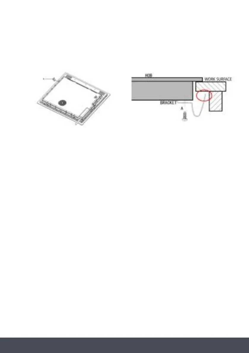 Fix the hob on the work surface by screwing 2 brackets on the bottom of hob (see picture) after