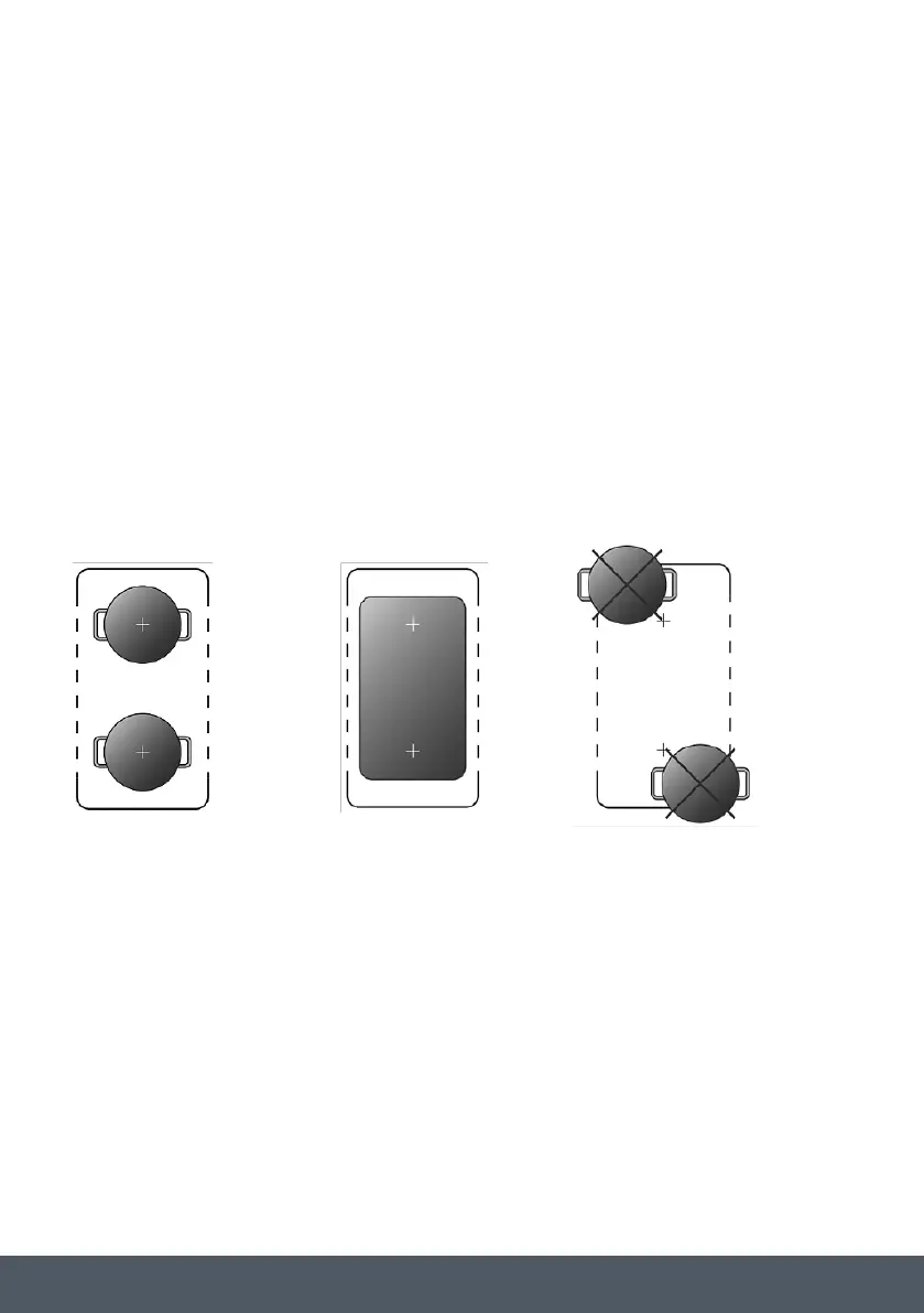 - Ensure the cookware is centred on a single cooking zone. If you are using oval, rectangular or