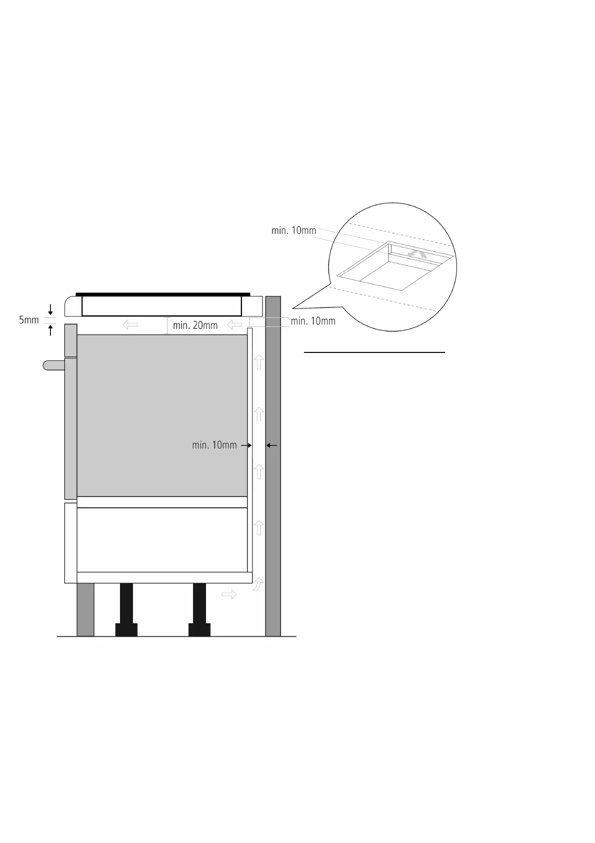 A 5mm gap at the front of the unit must be left, and