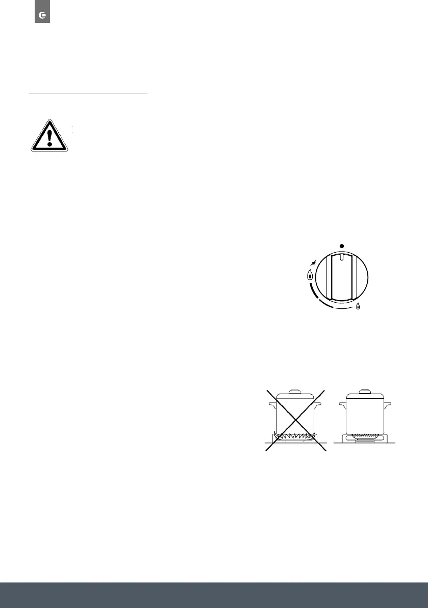 Once the burner has been started up, keep the knob pressed for about 6 seconds.