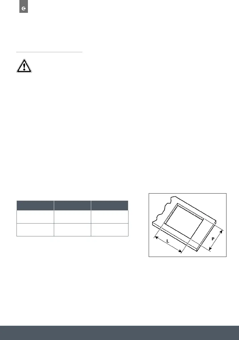 If the hob is to be installed beneath a wall-mounted kitchen cabinet, ensure there is a minimum