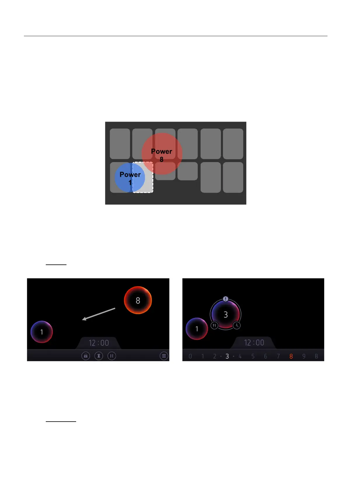 Pan with power level [ 8 ] moves to an induction coil which is already in operation.