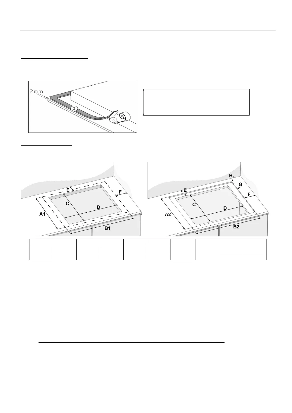 • The piece of furniture or the support in which the hob is to be fitted, as well as the edges of