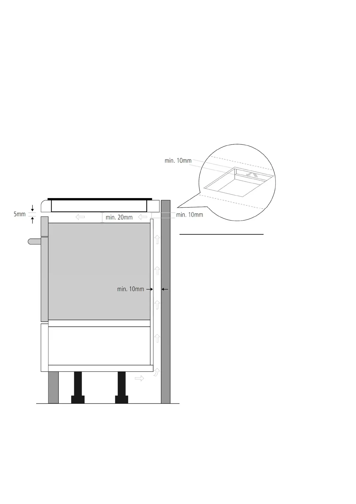• The safety gap between the hob and the cooker hood placed above must respect the