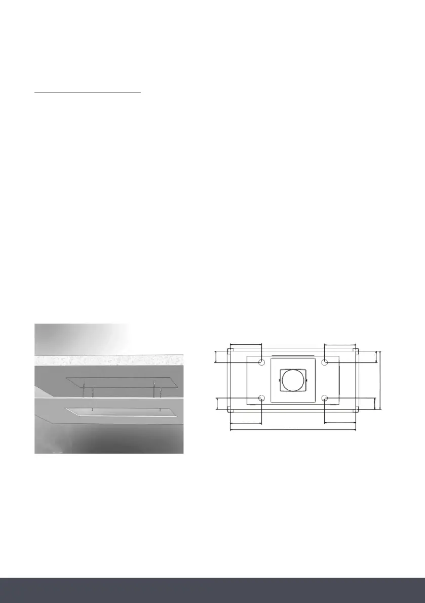Draw the outline of the hole to house the ceiling mounted hood on the solid ceiling (Fig.2).