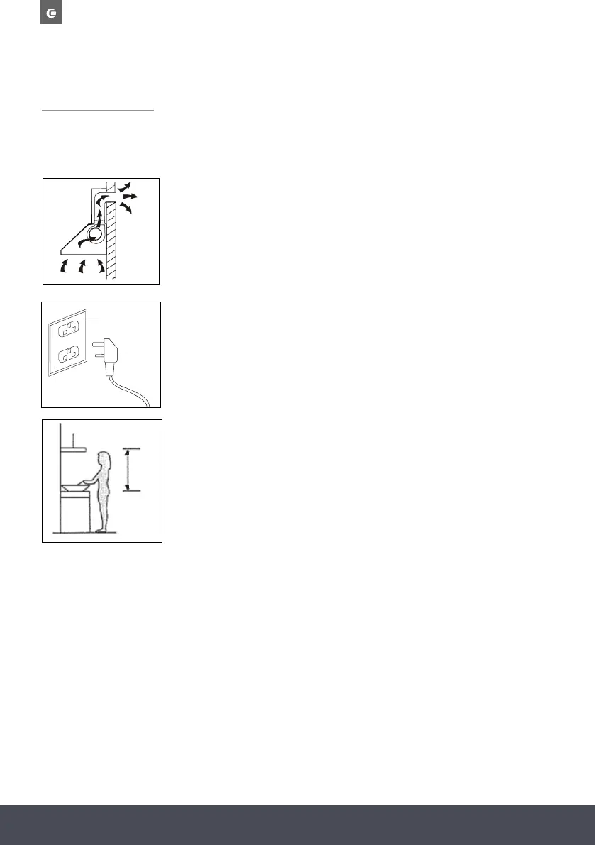 The cooker hood should be placed at a minimum distance of 65~76cm