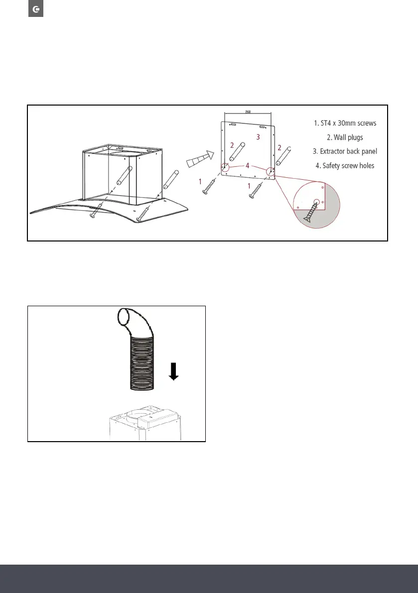 safety screws. After marking, remove the hood, drill two holes and insert 2 wall plugs and finally