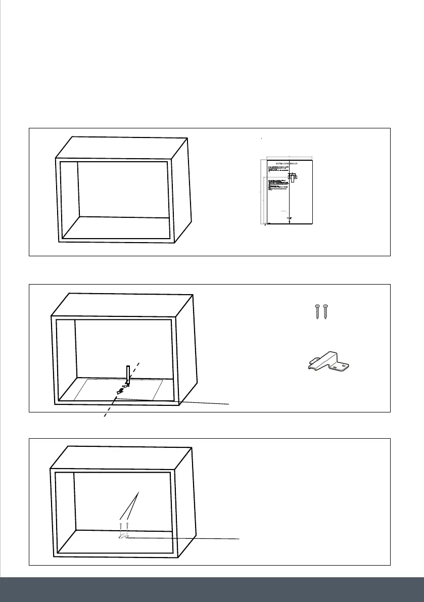 Remove the bottom cabinet template and fix the bracket with screw A.
