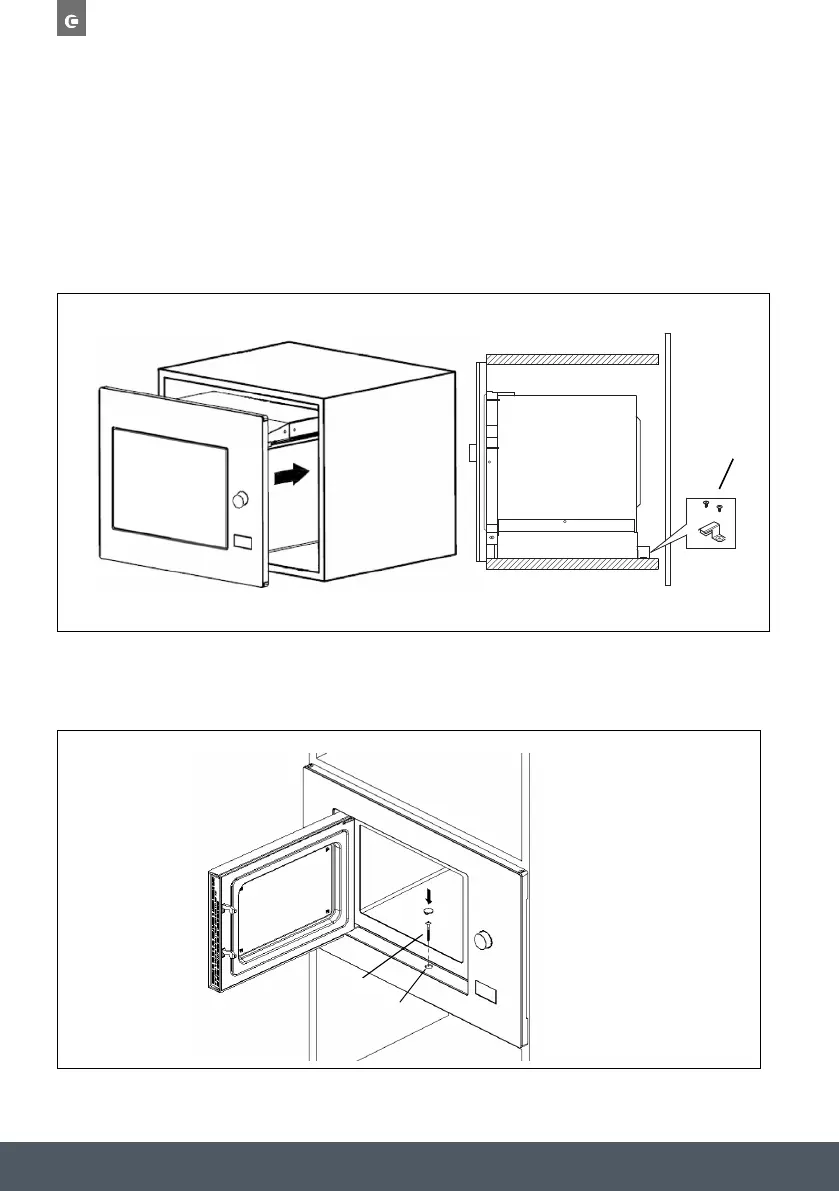 Open the door, fix the oven to the cabinet with Screw B, at the installation hole.