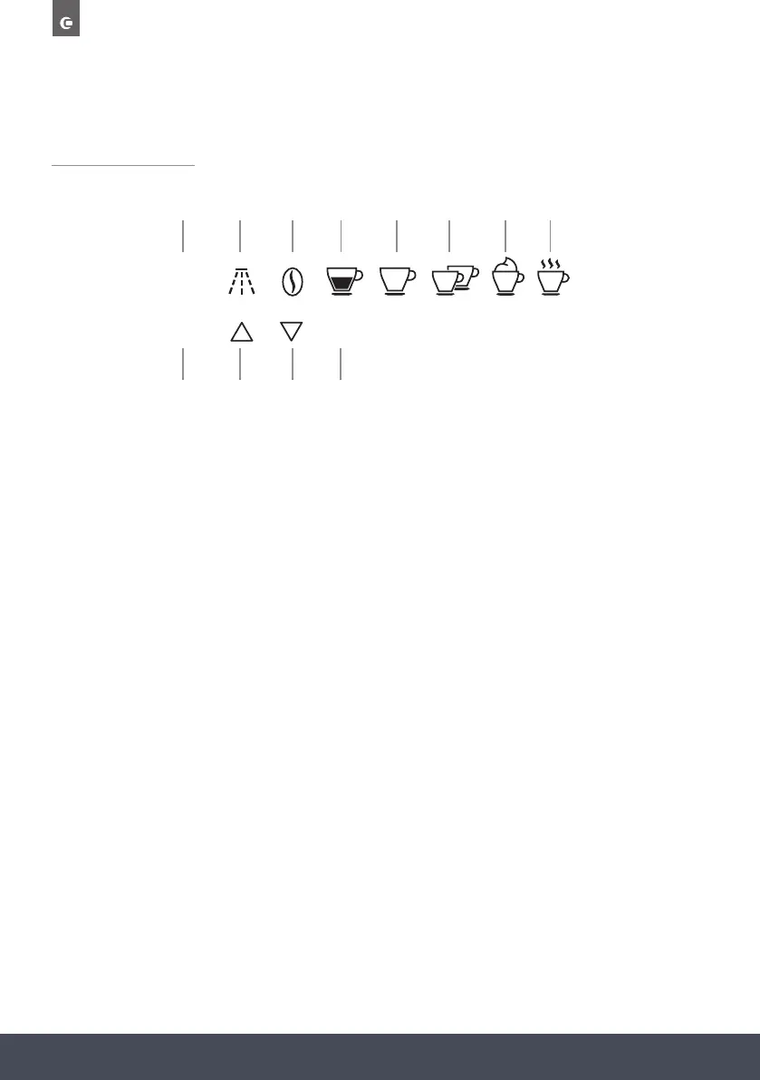 8. Touch key to select the type/quantity of coffee (espresso, smallcup,